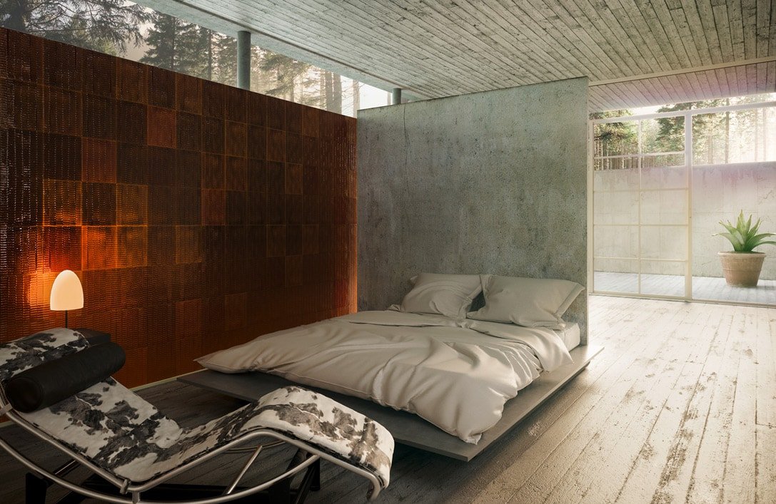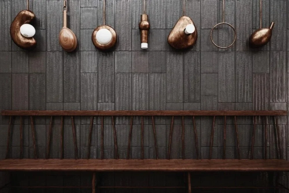 Des surfaces géométriques et tactiles, conçues pour interagir avec la lumière et créer des variations selon les compositions.